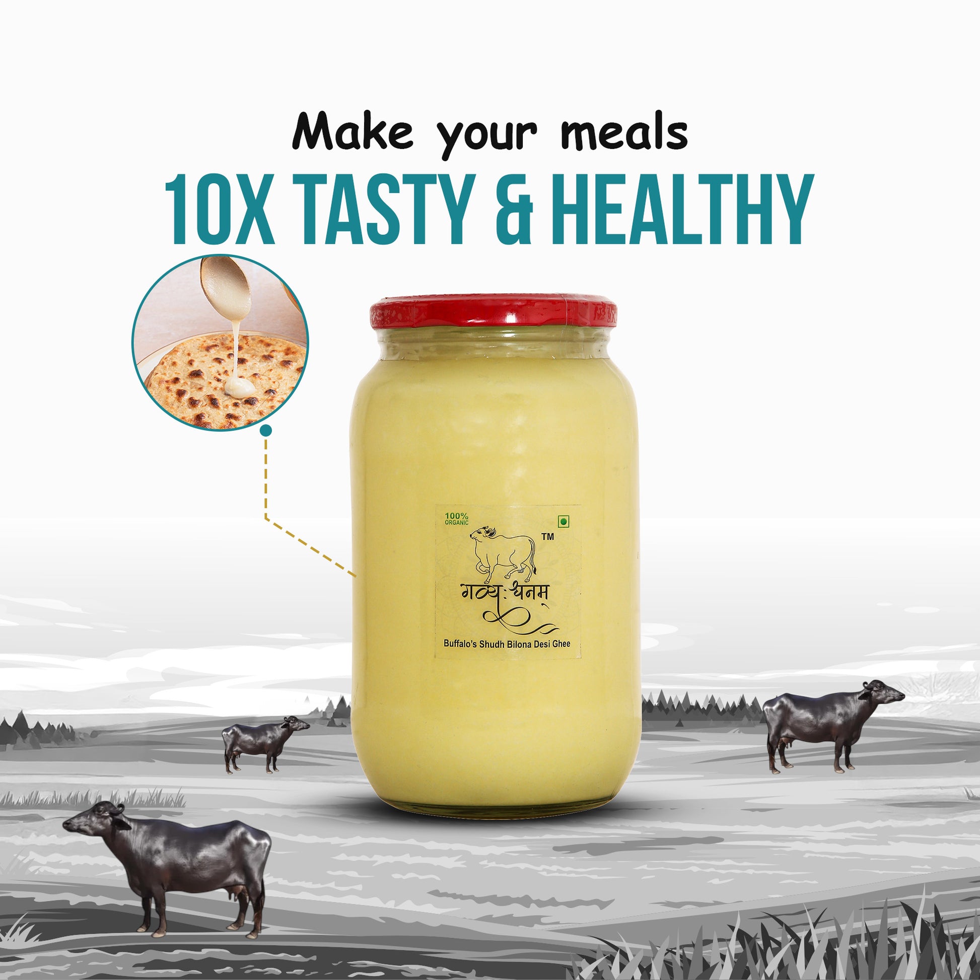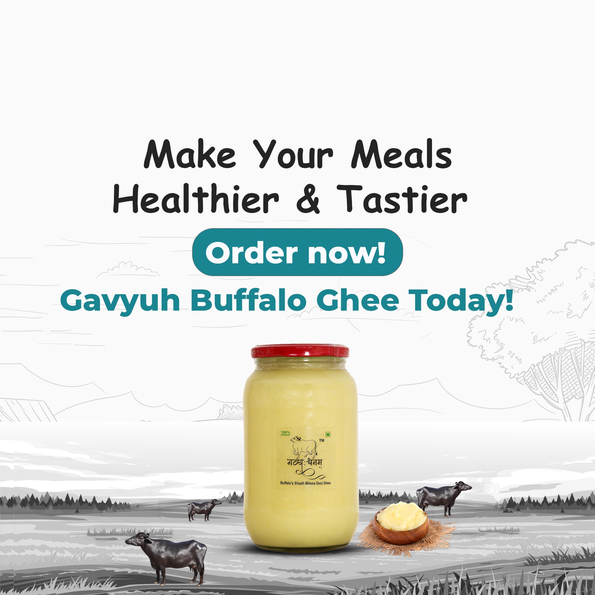 At Gavyuh, purity, authenticity, and transparency are at the heart of everything we create. Our Bilona Buffalo Ghee is crafted to meet the highest standards of quality while preserving traditional methods and natural goodness. Every jar reflects our dedication to health, taste, and sustainable practices — bringing you closer to nature with every spoon.