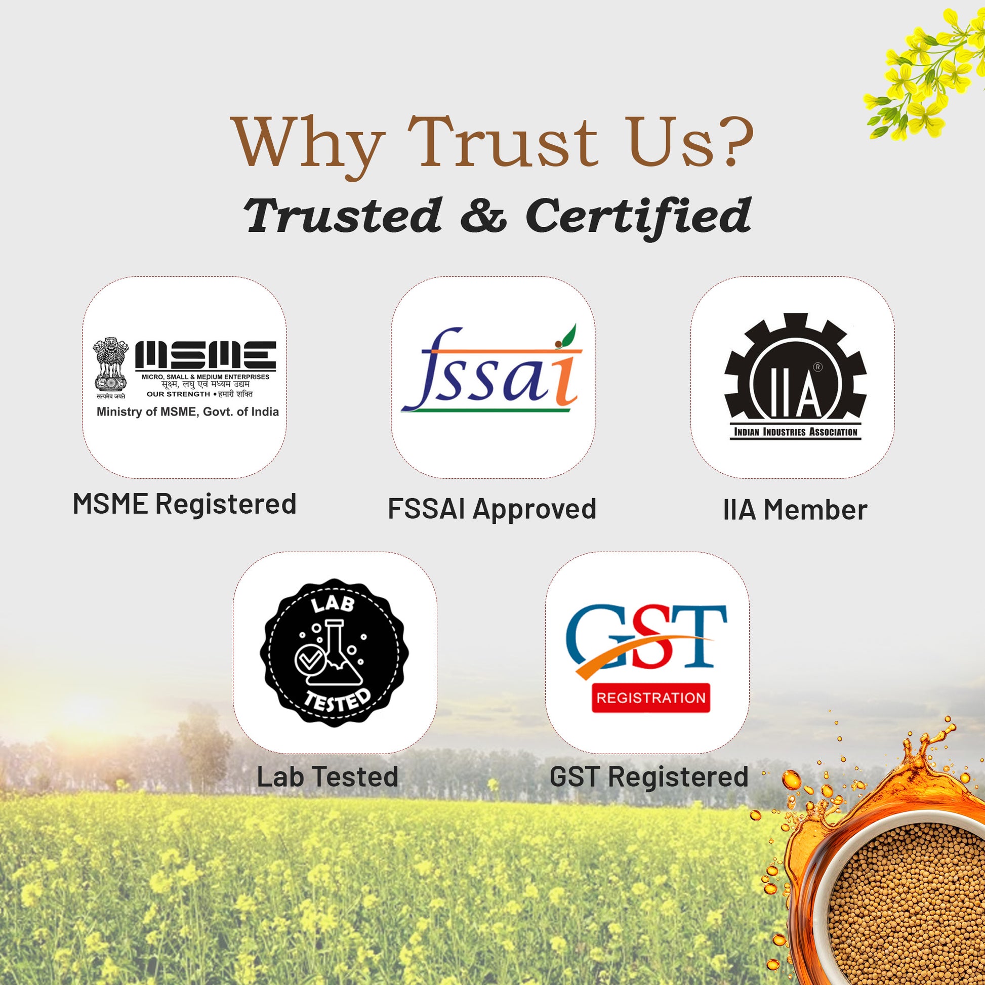 Free from artificial additives and preservatives, delivering pure, premium, and unadulterated mustard oil.
